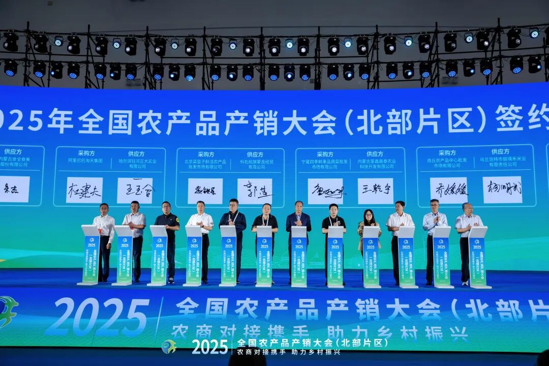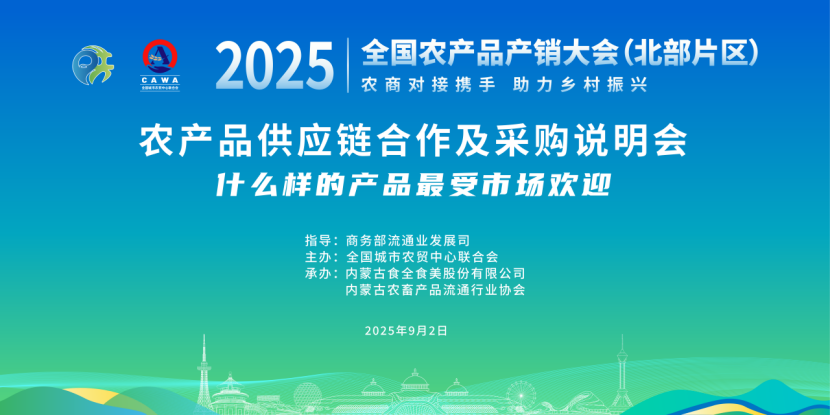 2025年全国农产品产销大会(北部片区)于9月5日在呼和浩特市敕勒川国际会展中心成功举办。本届大会以“农商对接携手 助力乡村振兴”为主题,汇聚来自北京、天津、河北、山西、内蒙古、辽宁、吉林、黑龙江等北部“五省两市一区”的大型商贸流通企业、生产加工企业及多家采购商,通过高效对接共同拓宽农特产品销售渠道,助力产业振兴与农民增收。全国城市农贸中心联合会(简称:全国农贸联)会长马增俊出席大会启动仪式,并率领由大型农批市场组成的57家88人的采购团参会对接并开展“农产品供应链合作与采购说明会”“农产品供应链建设座谈会”“美通农产品批发市场参观调研”等大会配套专项活动。内蒙古食全食美股份有限公司及内蒙古农畜产品流通行业协会作为相关活动承办单位。