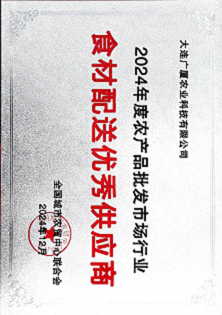 市场简介:大连广厦农业科技有限公司成立于2011年6月,自有种植基地100亩及加盟果蔬种植园3000余亩,经过十余年的发展,业务从种植养殖及设施农业拓展到果蔬及肉蛋奶鱼禽豆等全品类食材的一站式供应链及配送服务。 广厦农业以配送“种植好、养殖好、分拣好、配送好”的“四好”食用农产品为自己的企业使命。旗舰分拣仓面积近7000平方米,冷库库容超过2000立方米。具备每天同时为50万人提供食材分拣配送的能力。 如今,“好食材、选广厦”得到了社会各界的高度认可。 2024年,广厦农业获奖“中国农产品批发市场行业食材配送优秀经销商”。 辽宁师范大学生命科学学院和大连工业大学食品学院、大连市农业科学研究院等科研单位的产学研基地。在农残检测、食品食材安全以及土壤修复、良种选育等方面开展深入交流。 大连广厦农业科技有限公司的主要客户类型 一、机关单位 大连市机关事务管理局:大连市委、大连市政府、大连市人大、大连市政协,大连市留置中心,大连各民主党派,大连市工商联、大连市红十字协会、大连市供销总社等。 中共大连市委党校 大连市甘井子区机关事务管理局 大连市甘井子区农业农村局… 二、高校 大连市高等学校联合会成员高校:大连海事大学、大连医科大学、东北财经大学、大连交通大学、大连大学、大连职业技术学院(大连开放大学)、辽宁警察学院、大连艺术学院、中国人民解放军海军大连舰艇学院、大连海洋大学、辽宁师范大学、大连工业大学、大连大学乒乓球运动中等职业技术学校、大连民族大学、西岗区教育局区属中小学、大连电子学校、大连海洋学校。 大连理工大学、大连高级经理学院、大连科技学院等。 三、大型企业国优项目 大连机场集团、中国华油集团东北分公司、中国太平保险、中国铁路沈阳局集团有限公司大连工务段、亿达信息、中天建设等。 四、教育系统 职业院校及大连市的中小学、幼儿园。 五、各大餐饮公司